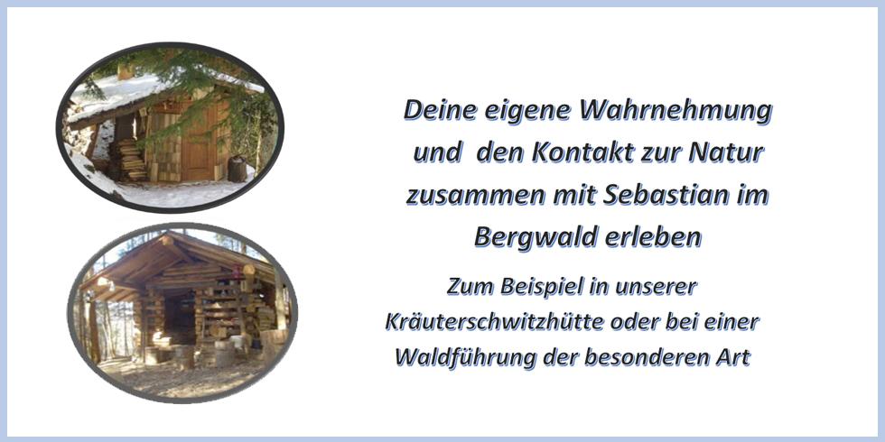 Deine eigene Wahrnehmung und den Kontakt zur Natur zusammen mit Sebastian im Bergwald erleben - zum Beispiel in unserer Kräuterschwitzhütte oder bei einer Waldführung der besonderen Art!
